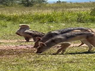 Une hyène fait face à une rencontre délicate avec deux ch